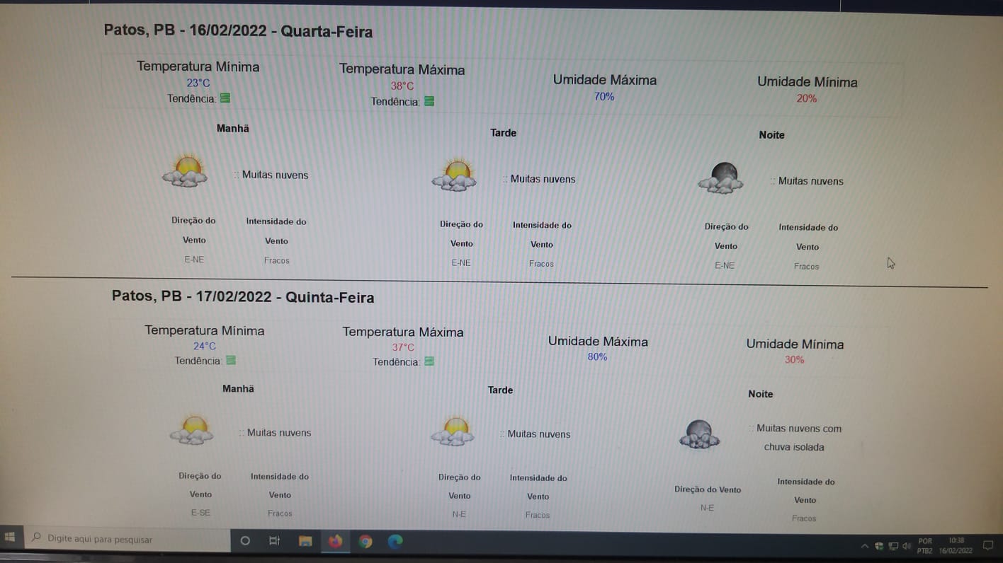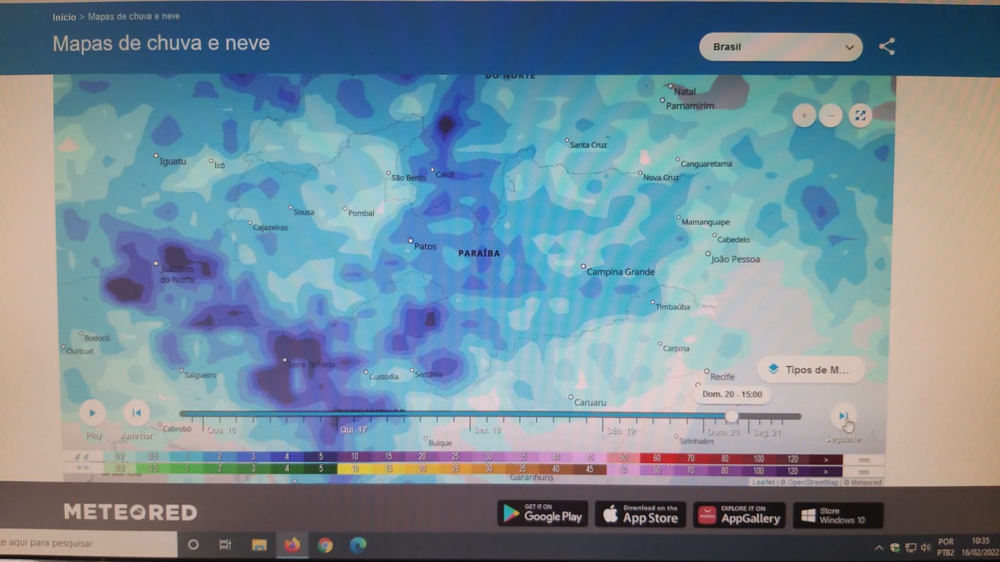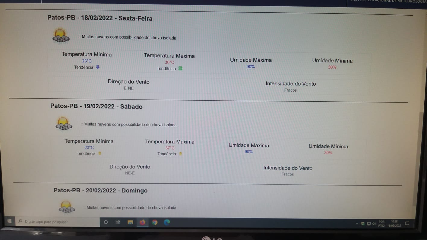 Os institutos de meteorologia pesquisados pelo técnico da EMPAER, Marconi Palmeira Filho, foram o INMET, Climatempo, Tempo Agora e Meteored.