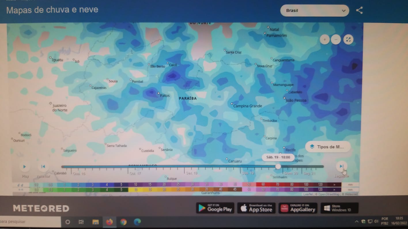 De acordo com o que está sendo previsto, o técnico da EMPAER Marconi Palmeira Filho informa que novos episódios de chuvas no Sertão ocorrerão já à partir desta quarta-feira, entre 22h e 0h.